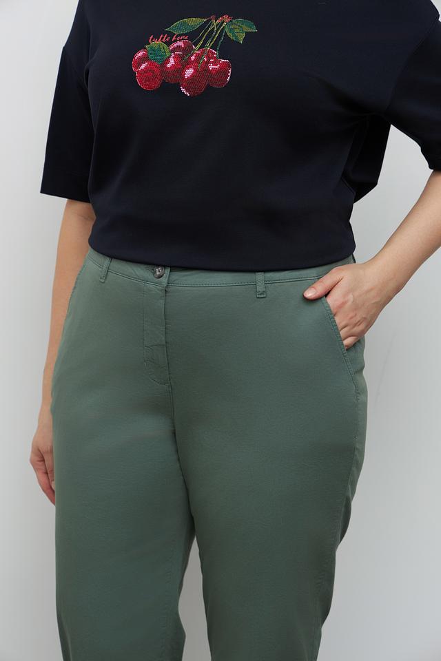 Брюки имеют прямой крой и зауженный низ, что придает им современный и стильный вид. Удобная посадка и эластичный материал (97% хлопок, 3% эластан) обеспечивают комфорт в течение всего дня.