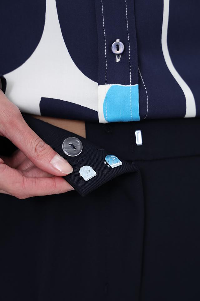 Цвет брюк – насыщенный темно-синий, который легко сочетается с различными элементами гардероба. Застежка на молнию и пуговицу, а также наличие боковых карманов делают модель практичной и функциональной. Брюки Gardeur – это стильный и удобный выбор для современной женщины.