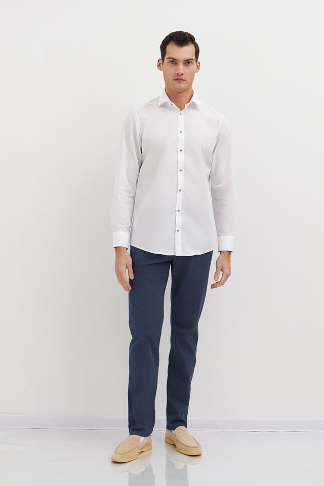 Брюки имеют прямой крой и стандартную посадку, что обеспечивает комфорт при носке. Изготовлены из высококачественного хлопка (96%) с добавлением эластана (4%), благодаря чему они хорошо держат форму и практически не мнутся.