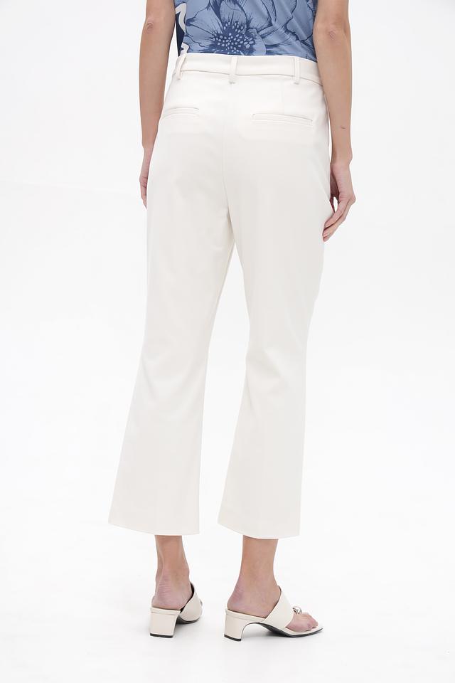 Классические брюки клёш от бренда Gerry Weber выполнены в молочном цвете. Модель имеет прямую посадку по талии и расширяющиеся к низу брючины, создавая элегантный силуэт.