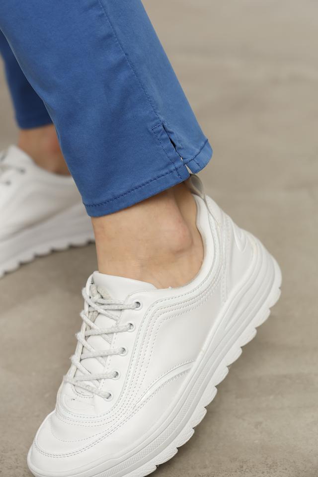 Брюки имеют классический крой, который подчеркивает фигуру и обеспечивает комфортную посадку. Изготовлены из высококачественного хлопка с добавлением эластомультиэстера и эластана, что делает их приятными на ощупь и обеспечивает свободу движений.
