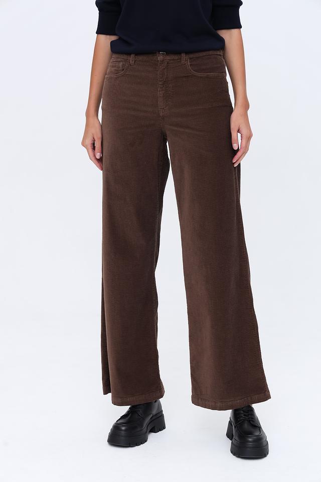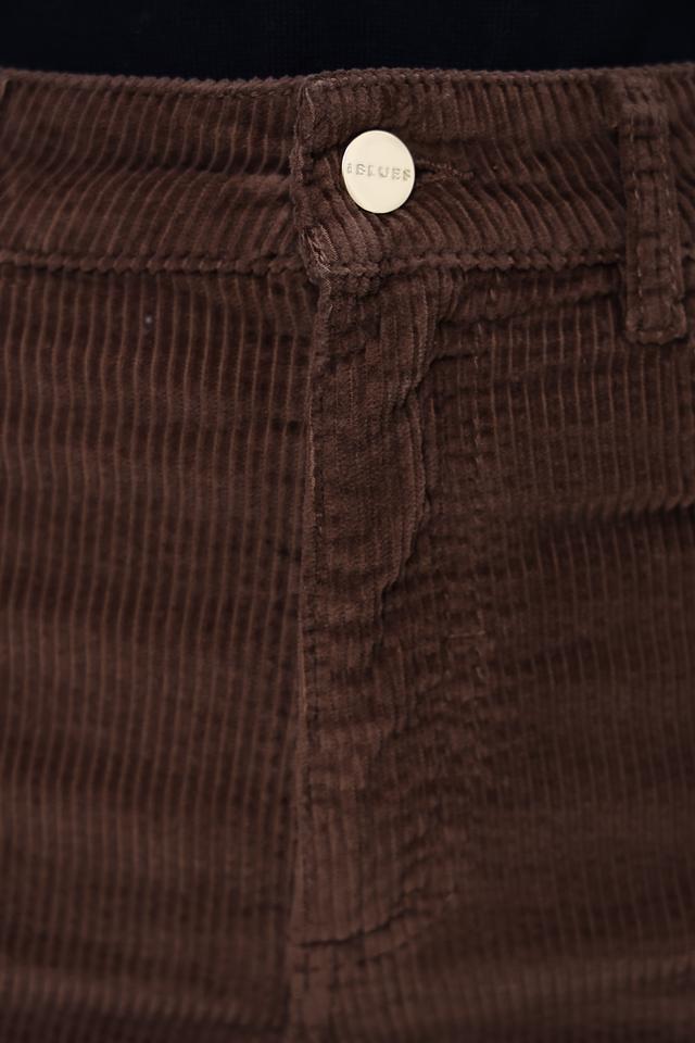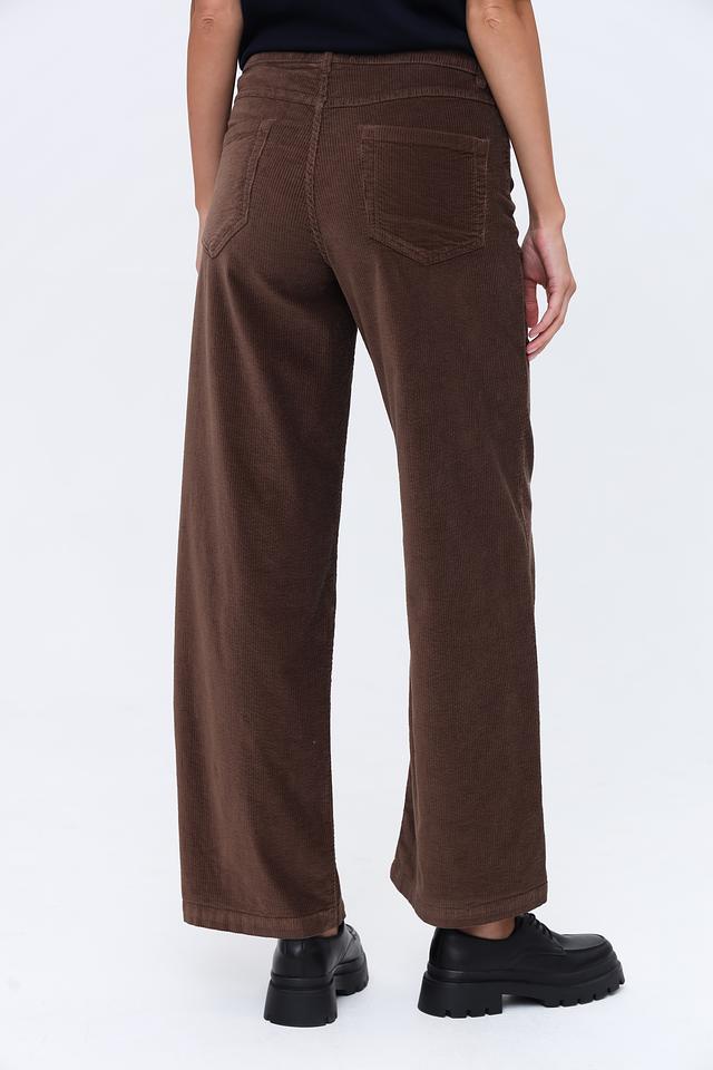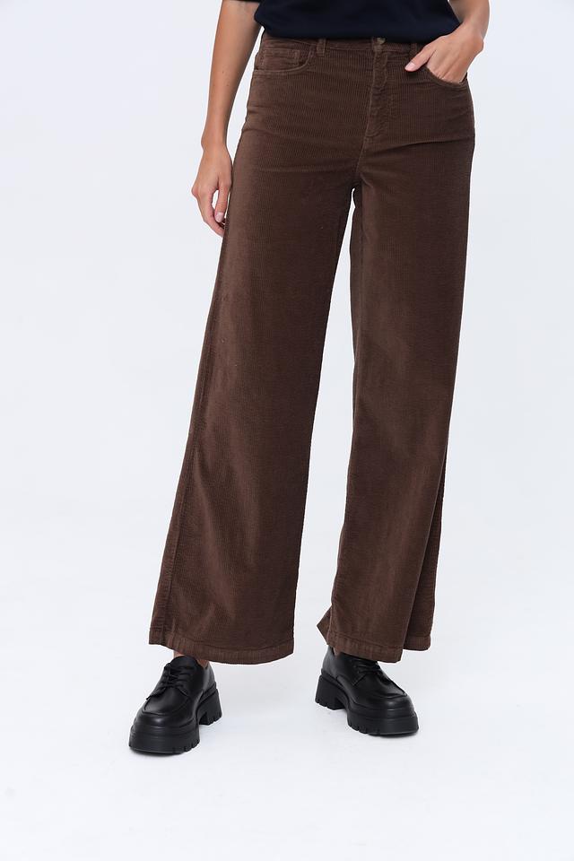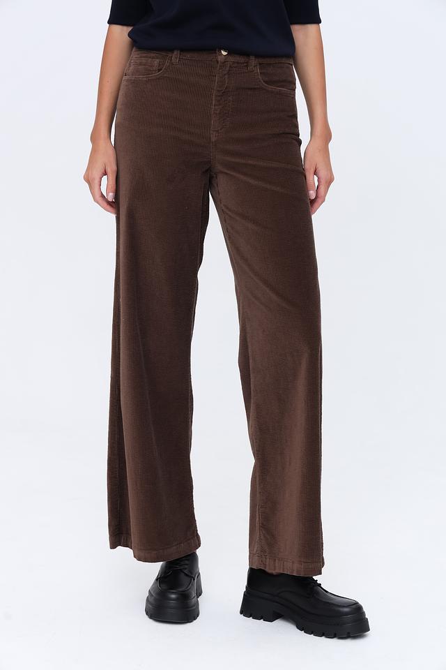 Брюки имеют классический коричневый цвет и прямой крой, который подходит для различных типов фигуры. Вельветовая текстура придает им особый шарм и элегантность. Брюки застегиваются на молнию и пуговицу, имеют стандартную посадку на талии.