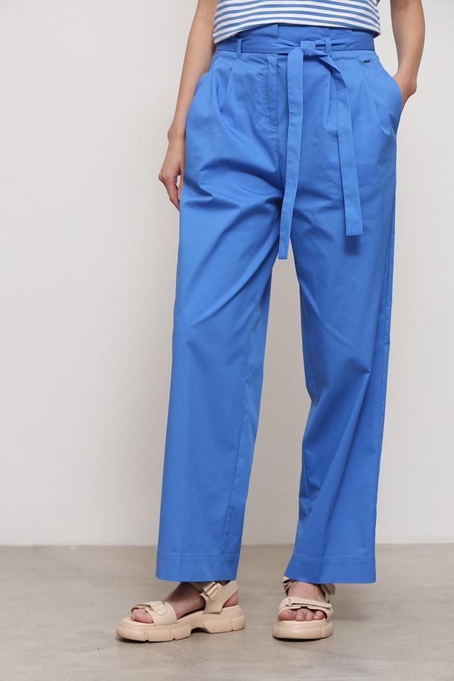 Брюки имеют широкий крой, обеспечивающий свободу движений и комфорт в течение всего дня. Пояс на завязках позволяет регулировать посадку по фигуре, подчеркивая талию. Ткань состоит из хлопка (65%), нейлона (32%) и эластана (3%), что обеспечивает приятные тактильные ощущения, износостойкость и небольшую эластичность.