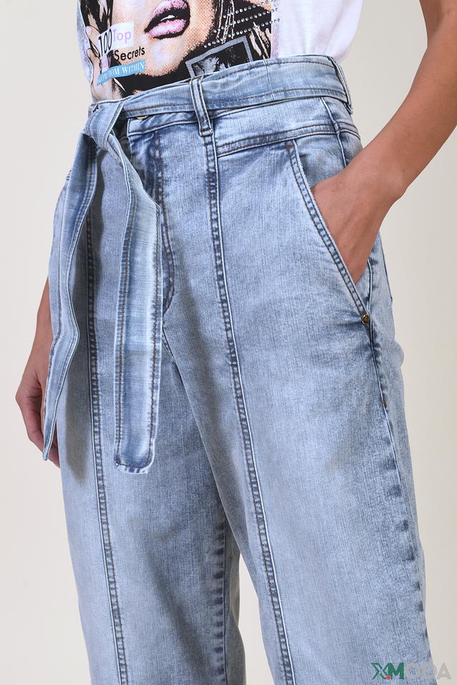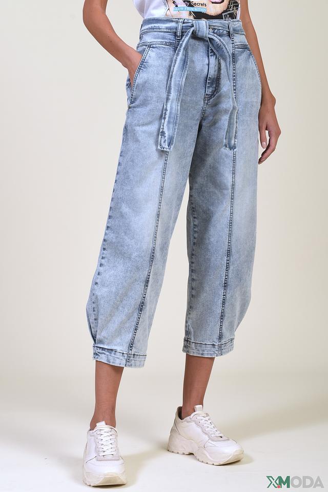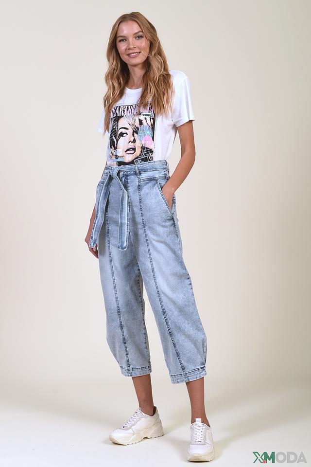 Женские брюки i Blues голубого цвета с завышенной талией и поясом-завязкой. Модель выполнена в свободном крое с эффектом потертости, что придает ей непринужденный и стильный вид. Состав брюк включает хлопок и эластан. Состав: хлопок 98%, эластан 2%