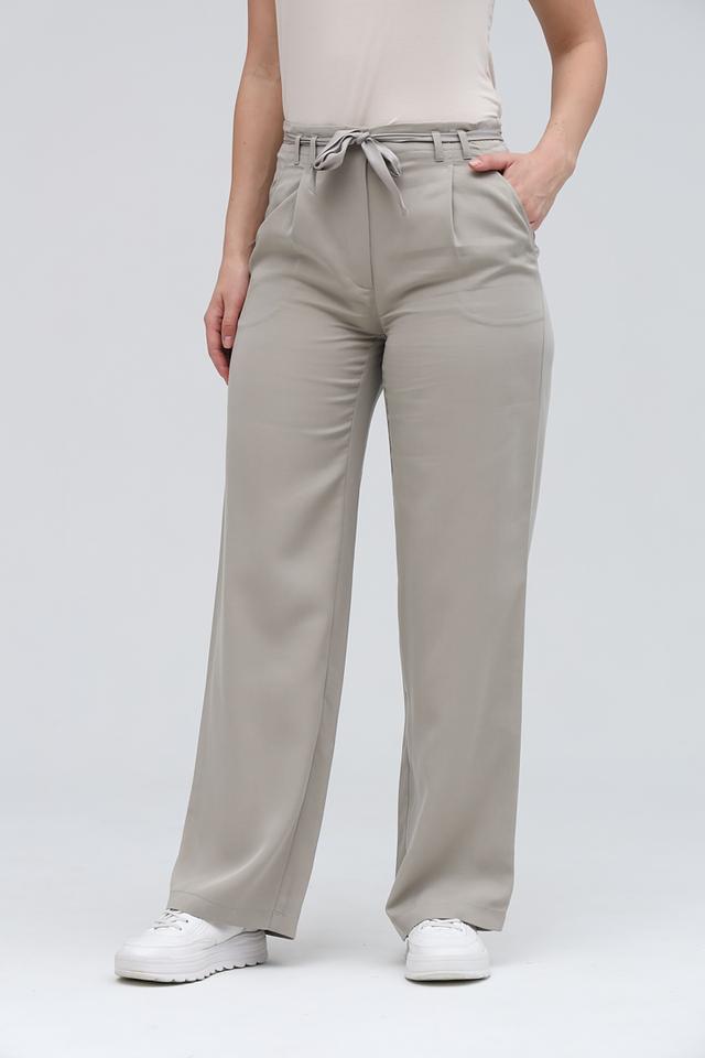 Брюки имеют завышенную талию и пояс с завязками, которые подчеркивают фигуру и позволяют регулировать посадку. Прямой крой и широкие штанины обеспечивают свободу движений и комфорт. Модель дополнена функциональными карманами.