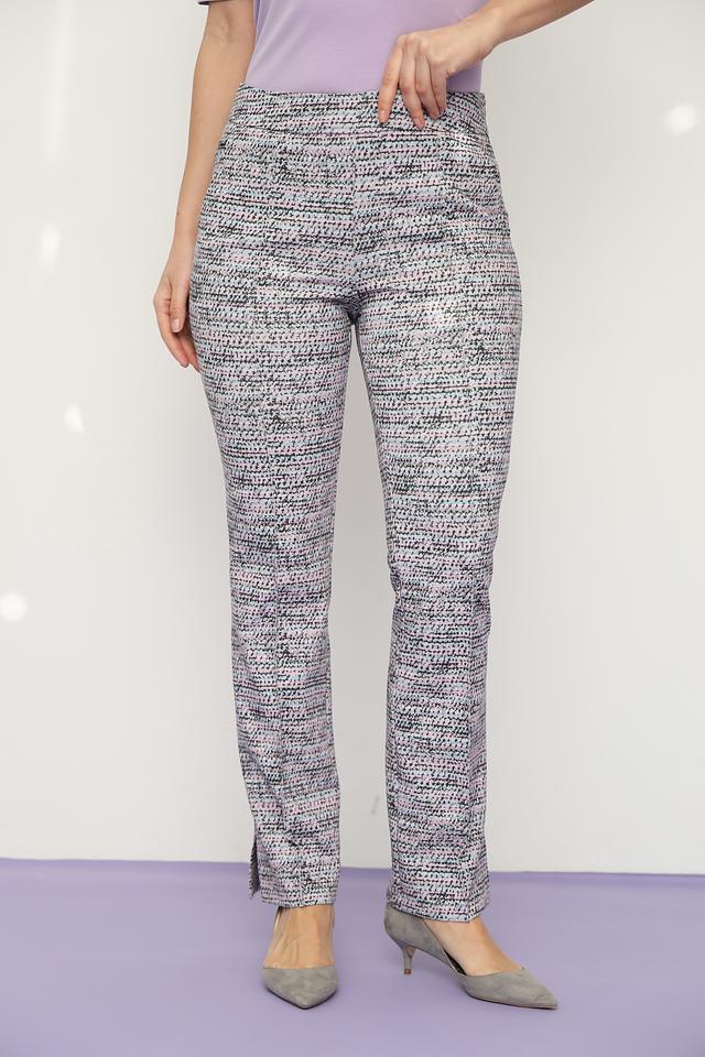 Женские брюки Lecomte серого цвета с оригинальным клетчатым принтом станут отличным дополнением к вашему гардеробу. Модель выполнена из комфортной ткани с добавлением эластана, обеспечивающего свободу движений. Состав: полиэстер 65%, хлопок 30%, эластан 5%