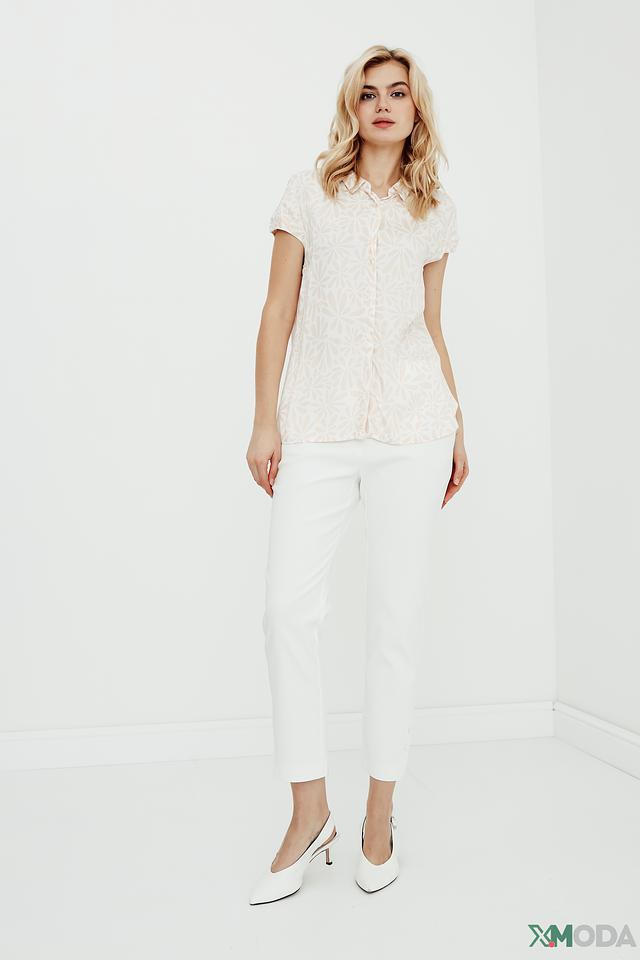 Модель имеет стандартную посадку на талии, застежку на молнию и пуговицу. Лаконичный дизайн дополнен аккуратными швами и небольшими складками, придающими брюкам более изысканный вид. Укороченная длина делает их идеальными для ношения с туфлями, лоферами или кедами.