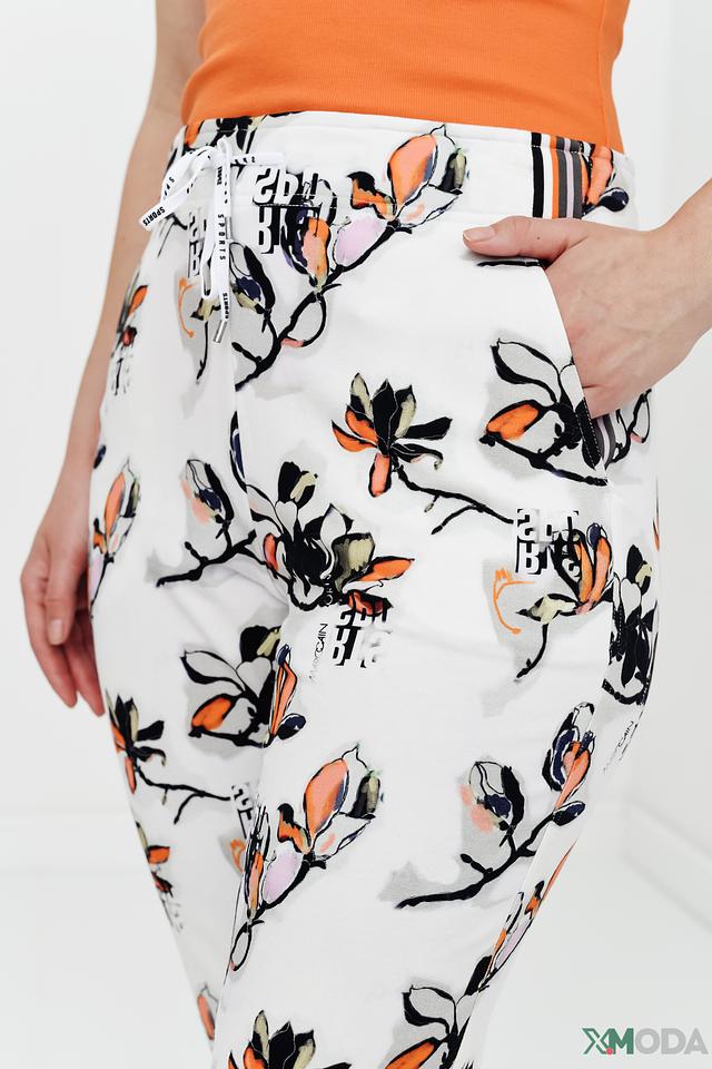 Эти спортивные брюки от Marc Cain станут отличным дополнением к вашему гардеробу. Брюки выполнены в белом цвете и украшены ярким цветочным принтом, который придает им оригинальность и свежесть.