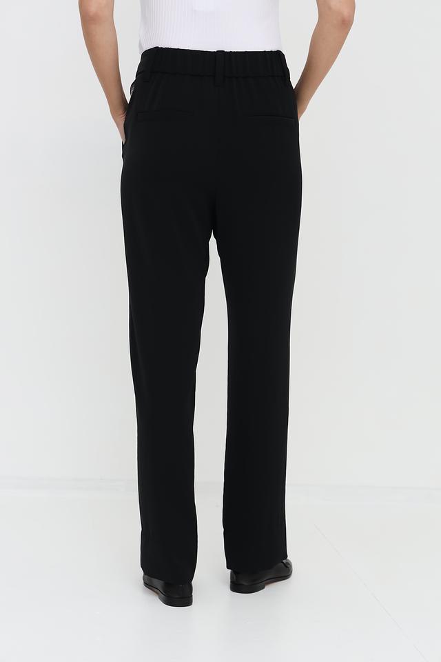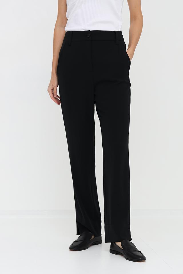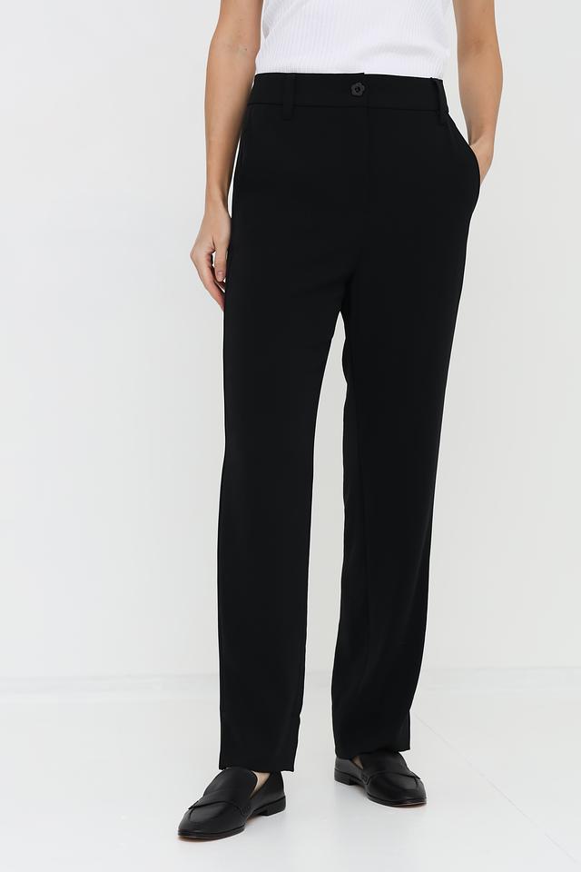 Брюки имеют прямой крой, который обеспечивает комфортную посадку по фигуре. Высокая посадка визуально удлиняет ноги и подчеркивает талию. Застежка на пуговицу и молнию обеспечивает надежную фиксацию.