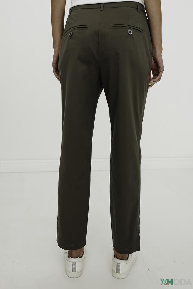 Брюки изготовлены из высококачественного хлопка с добавлением полиэстера и эластана, что обеспечивает прочность, износостойкость и небольшую эластичность. Застежка на молнию и пуговицу, а также наличие задних карманов с клапанами добавляют функциональности и стиля.
