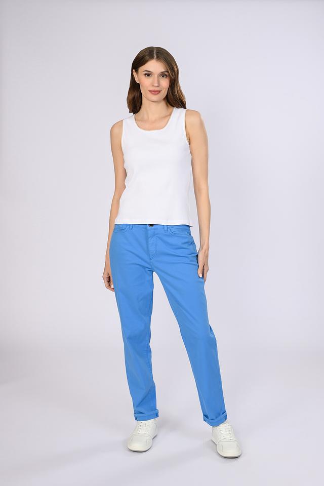 Представляем стильные брюки от бренда Marc Cain Sports. Эта модель выполнена в ярком голубом цвете и станет отличным дополнением к вашему гардеробу.