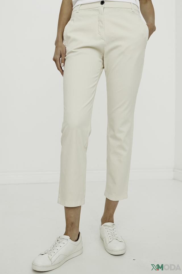 Нежный бежевый цвет брюк легко сочетается с различными элементами одежды, позволяя создавать разнообразные образы – от деловых до повседневных. Состав: хлопок 98%, эластан 2%.