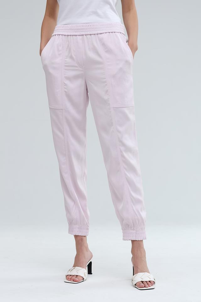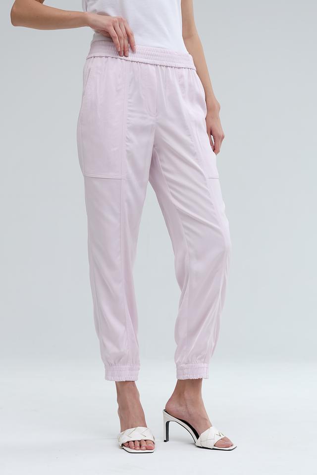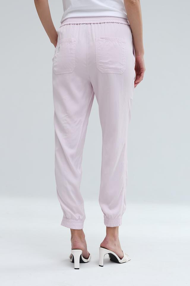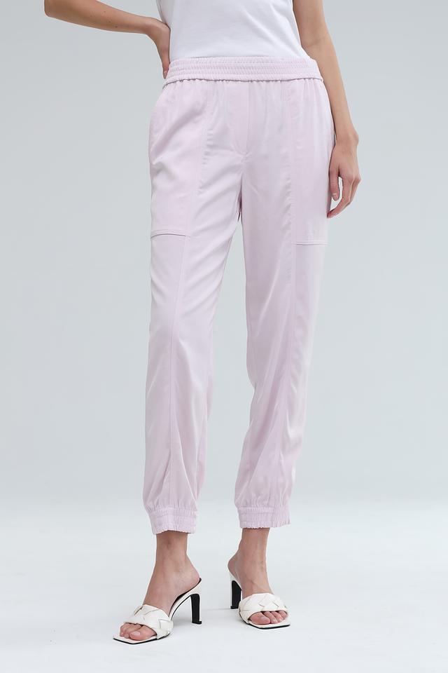 Спортивные брюки Marc Cain нежно-розового цвета выполнены из мягкой вискозы с добавлением эластана. Модель имеет удобный пояс на резинке и боковые карманы, обеспечивающие комфорт и практичность. Состав: вискоза 98%, эластан 2%