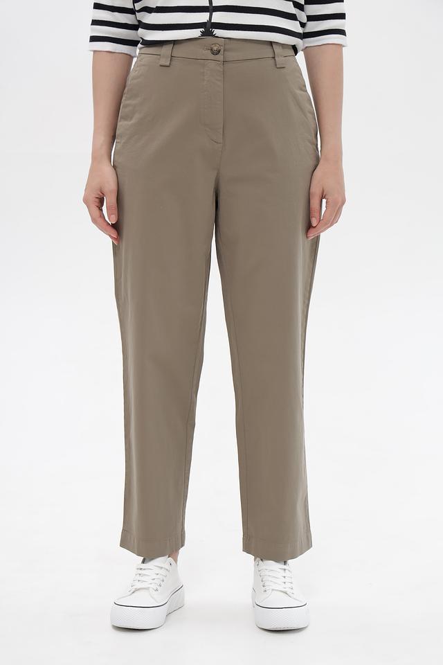 Брюки изготовлены из высококачественного 100% хлопка, что обеспечивает комфорт в носке и приятные тактильные ощущения. Прямой крой и стандартная посадка по бедрам делают их подходящими для различных типов фигур.