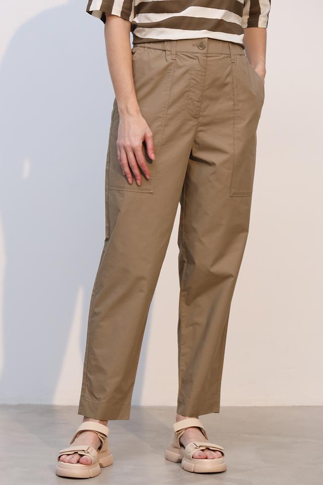 Брюки Marc O Polo цвета хаки — это стильная и удобная модель прямого кроя с эластичным поясом и боковыми карманами. Изготовлены из хлопка с добавлением лиоцела, обеспечивающих комфорт и воздухопроницаемость. Состав: хлопок 59%, лиоцел 41%