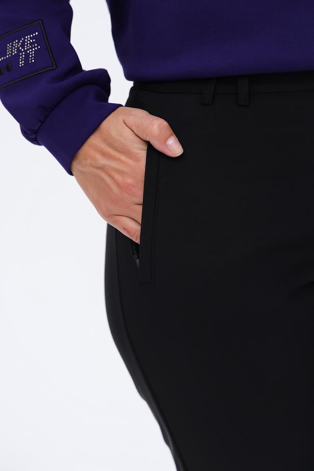 Брюки имеют прямой крой, который подчеркивает достоинства фигуры и обеспечивает комфорт при носке. Материал — сочетание полиэстера (90%) и эластана (10%) — отличается высокой износостойкостью, эластичностью и простотой в уходе. Наличие боковых карманов добавляет функциональности.