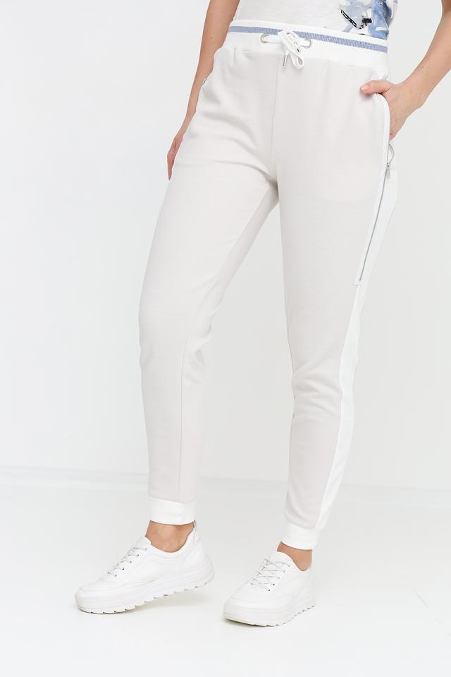 Дизайн брюк дополнен контрастными белыми полосами по бокам, придающими им спортивный вид. Наличие молнии на кармане добавляет функциональности. Удобный крой и мягкий материал делают эти брюки идеальными для занятий спортом, прогулок или просто для отдыха дома.