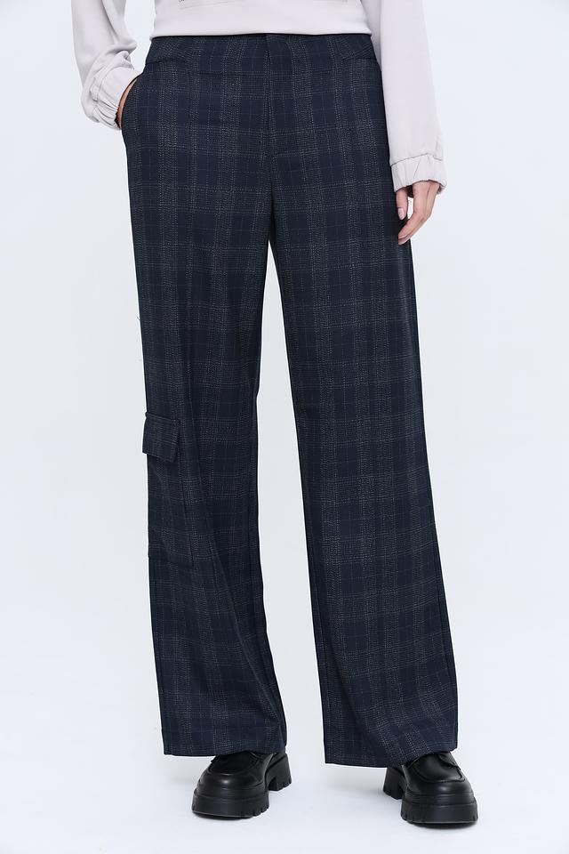 Женские брюки Monari тёмно-синего цвета в классическую клетку – стильное и комфортное решение для создания повседневных образов. Модель прямого кроя с карманами и декоративными элементами. Состав: полиэстер 63%, вискоза 34%, эластан 3%