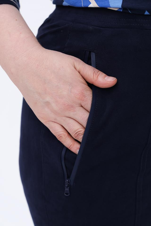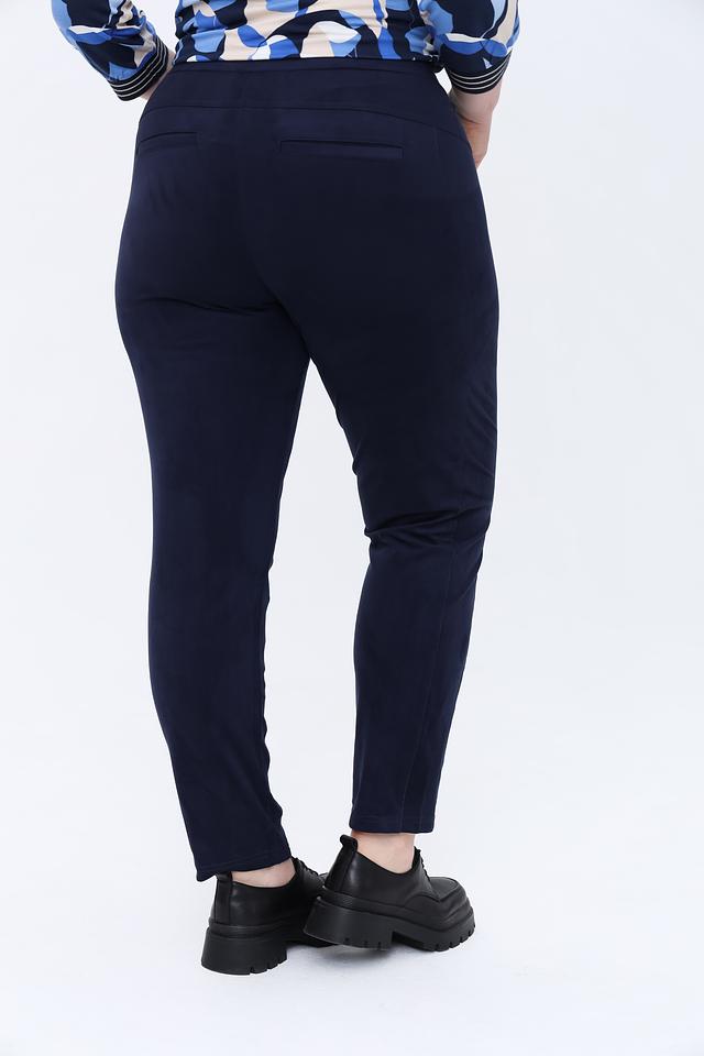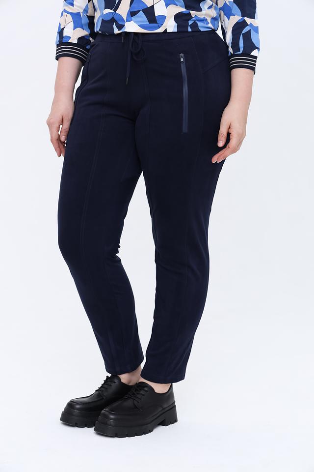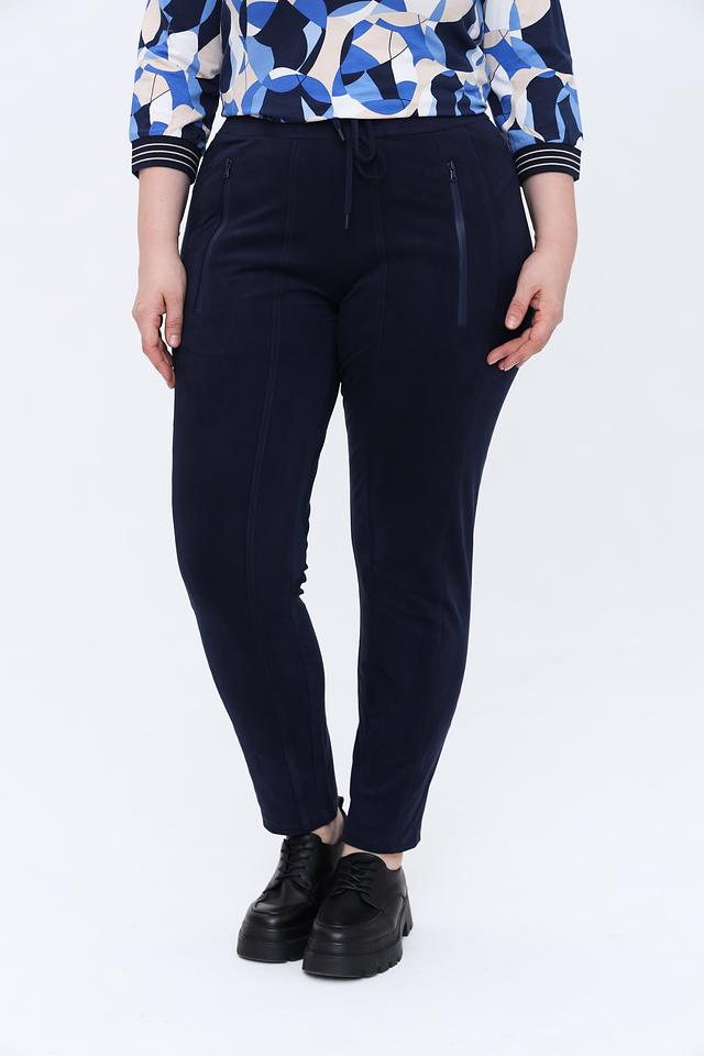 Темно-синие брюки от Olsen — это стильное и комфортное решение для повседневного гардероба. Модель выполнена из мягкой ткани с добавлением эластана, обеспечивающего свободу движений. Брюки имеют удобный пояс на резинке и шнуровке. Состав: полиэстер 91%, эластан 9%