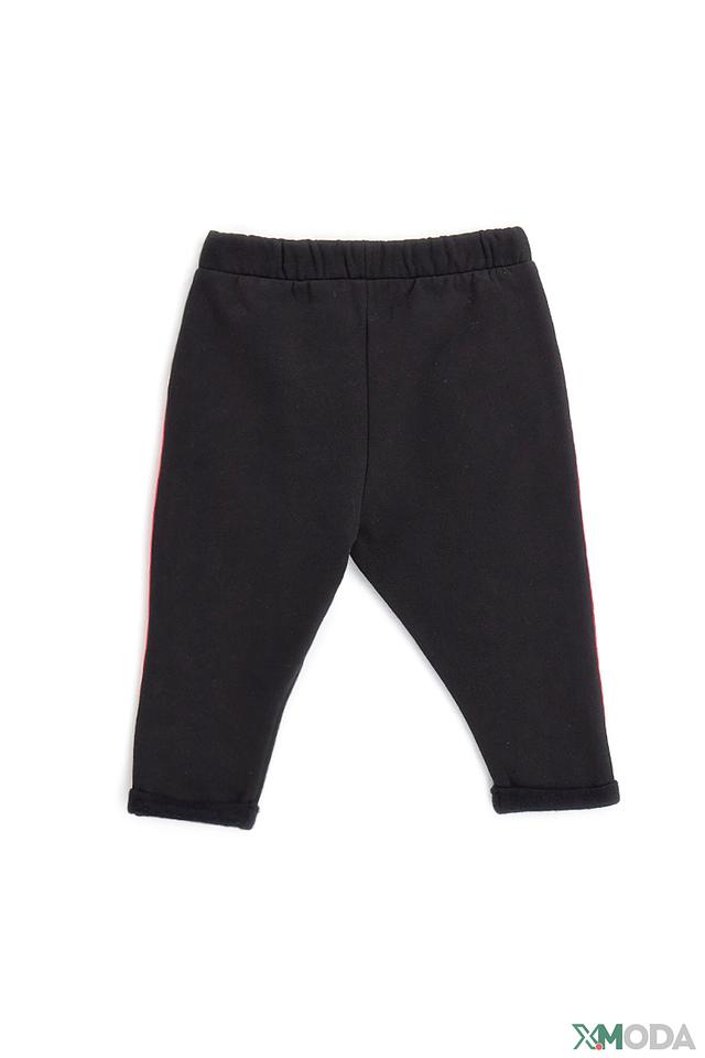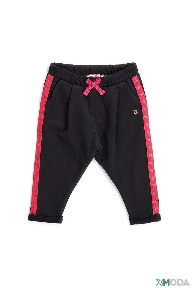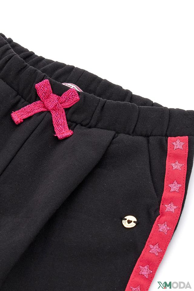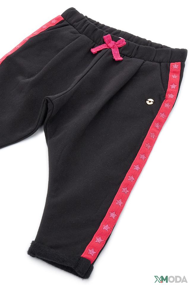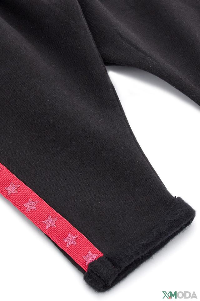 Брюки выполнены из мягкого хлопка с добавлением эластана, что обеспечивает приятные тактильные ощущения и свободу движений. Эластичный пояс дополнен декоративным бантом, который придаёт брюкам очаровательный вид. По бокам брюк проходит красная полоса, украшенная звёздами, что делает их более яркими и привлекательными.