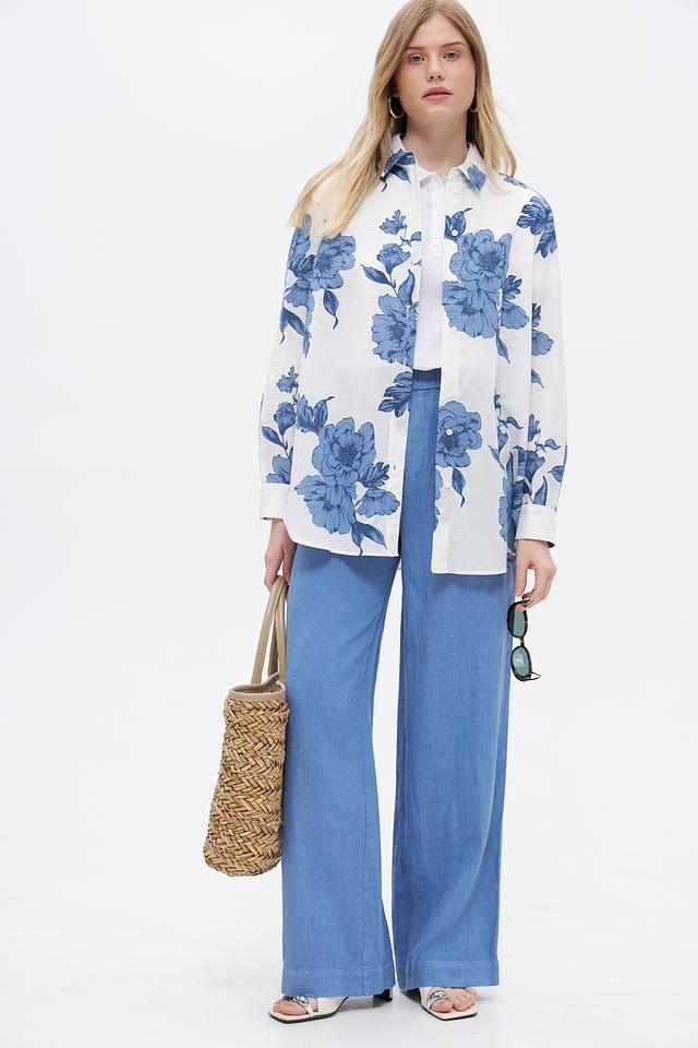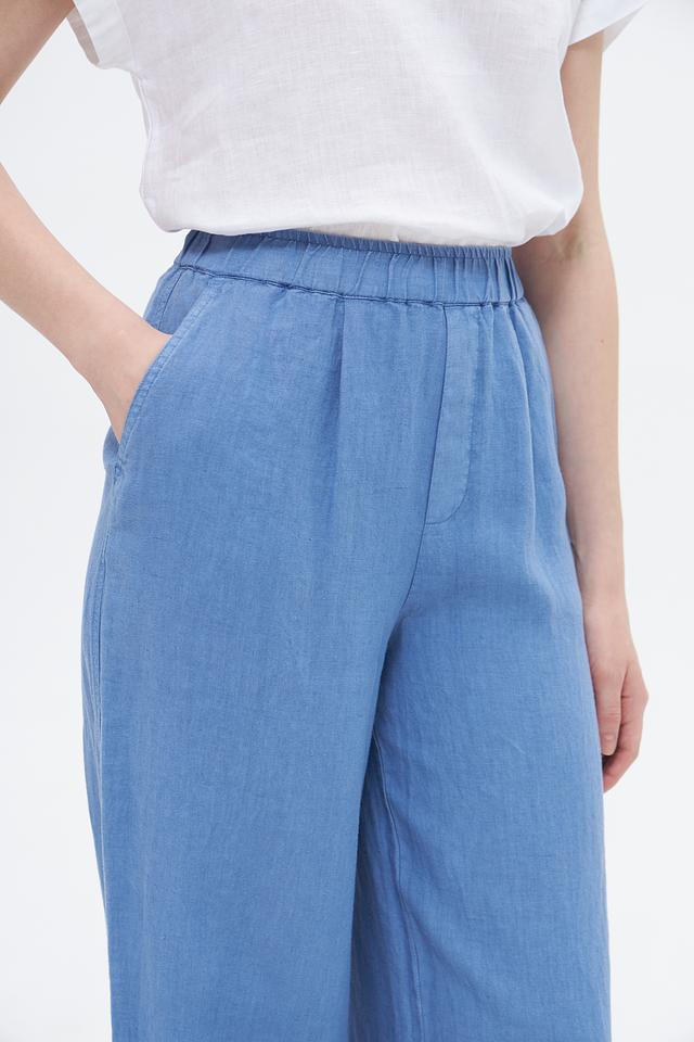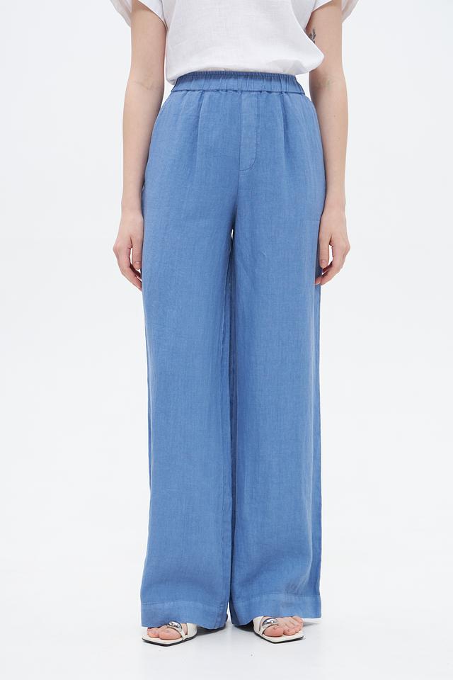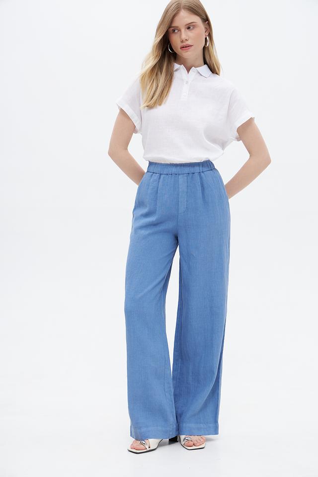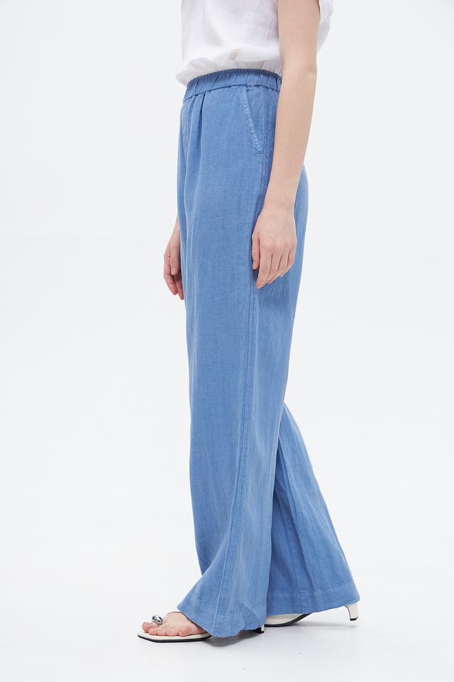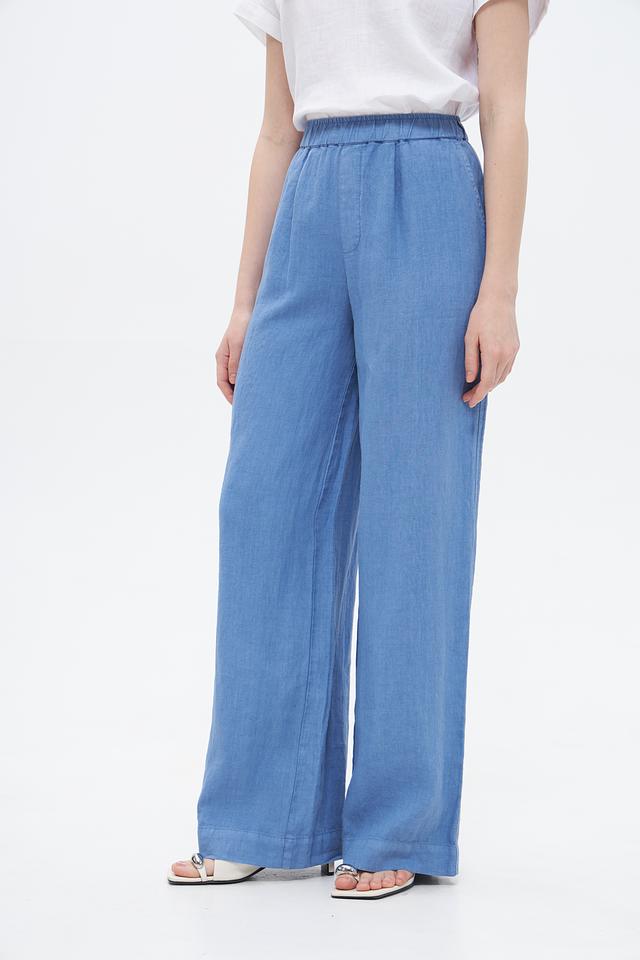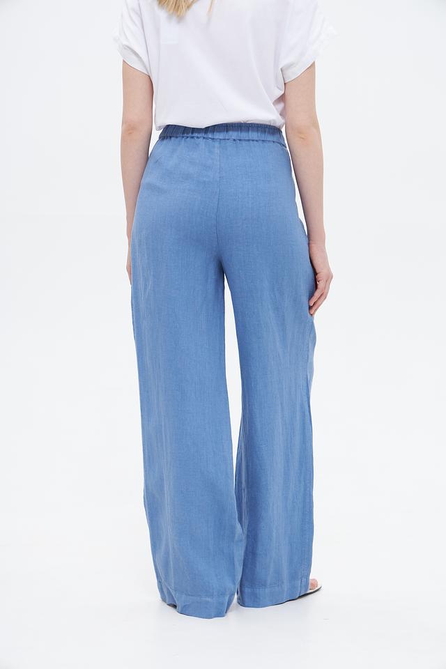 Благодаря своему лаконичному дизайну и универсальному голубому цвету, эти брюки легко сочетаются с различными топами, блузками и обувью, создавая разнообразные образы для повседневной жизни и особых случаев. Лёгкий и приятный к телу лён делает эти брюки идеальным выбором для летнего сезона.