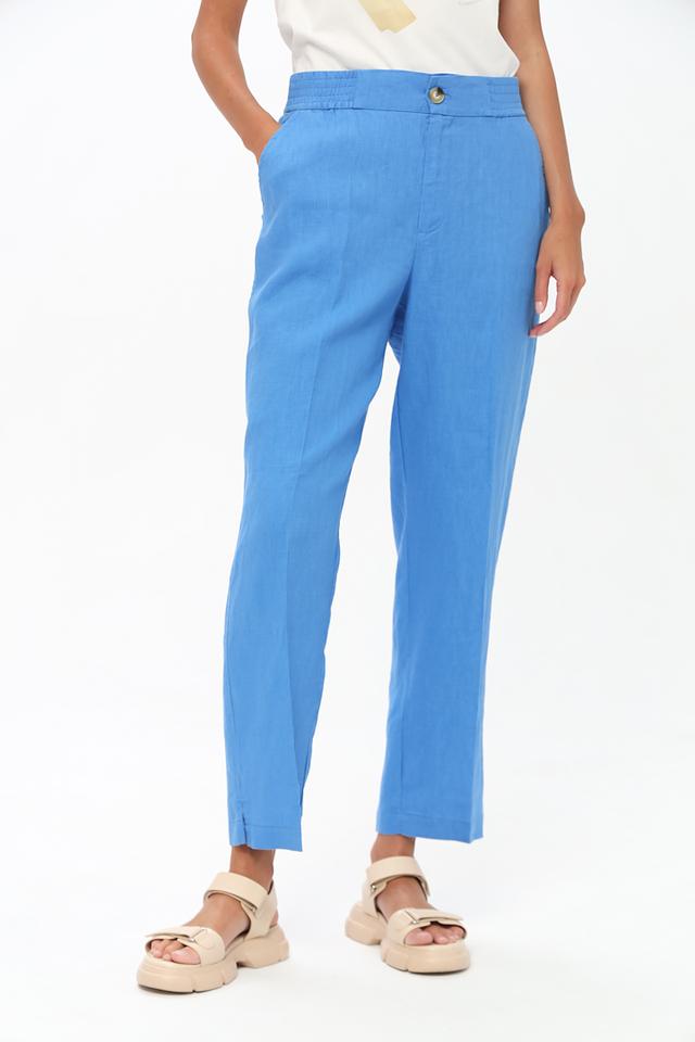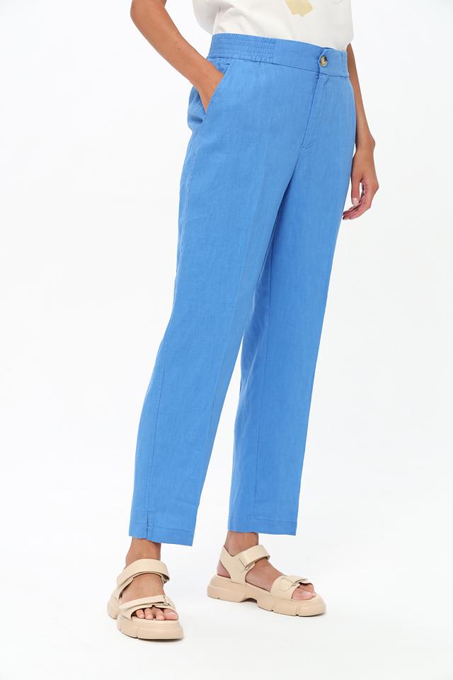 Голубые льняные брюки от Oui — стильное и комфортное решение для летнего гардероба. Прямой крой и эластичный пояс обеспечивают удобную посадку, а натуральный лен дарит ощущение прохлады. Состав: лен 100%