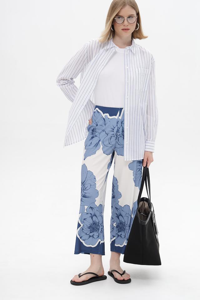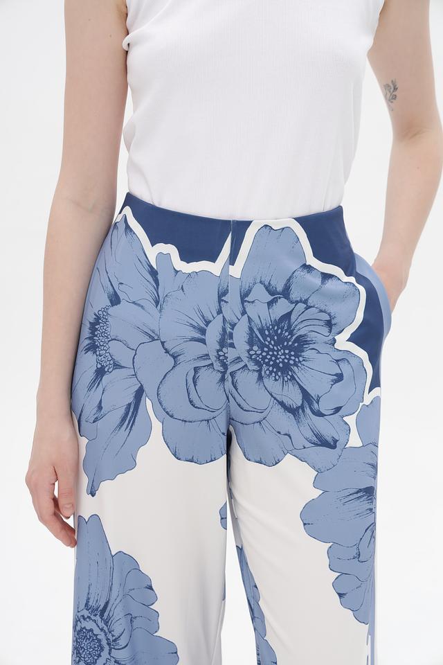Женские брюки клёш от бренда Oui станут ярким акцентом вашего образа. Модель выполнена в светлых тонах с крупным цветочным принтом, создающим эффектный и запоминающийся вид.