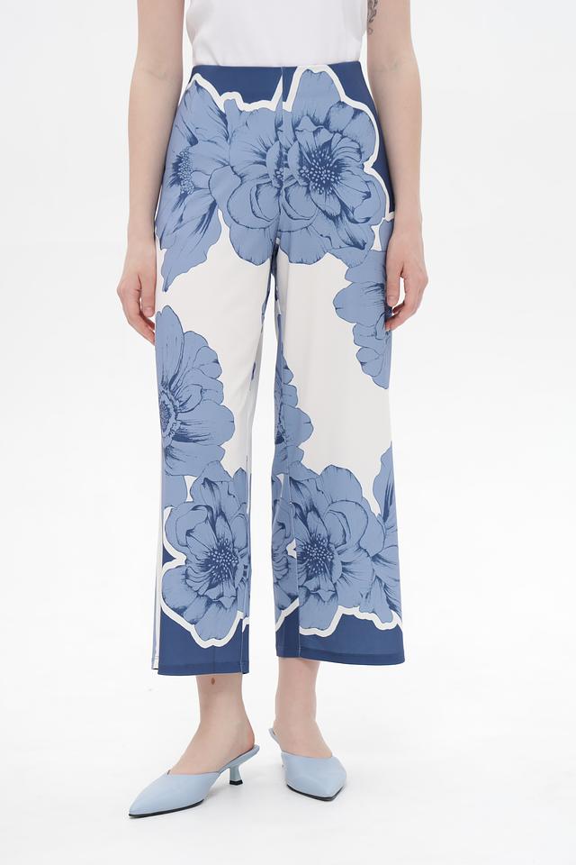 Брюки имеют клёш от бедра, обеспечивая свободу движений и комфорт при носке. Высокая посадка подчеркивает талию и визуально удлиняет ноги.