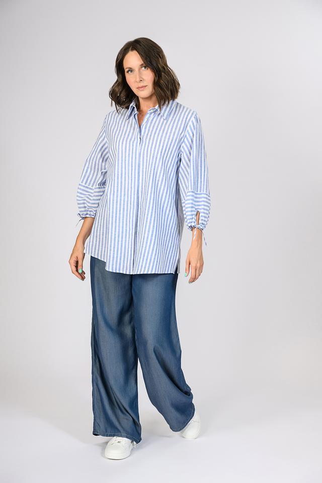 Брюки имеют высокую посадку и свободный крой, который обеспечивает свободу движений и создает эффект легкости. Пояс в тон изделия позволяет подчеркнуть талию и придать силуэту более женственные очертания.