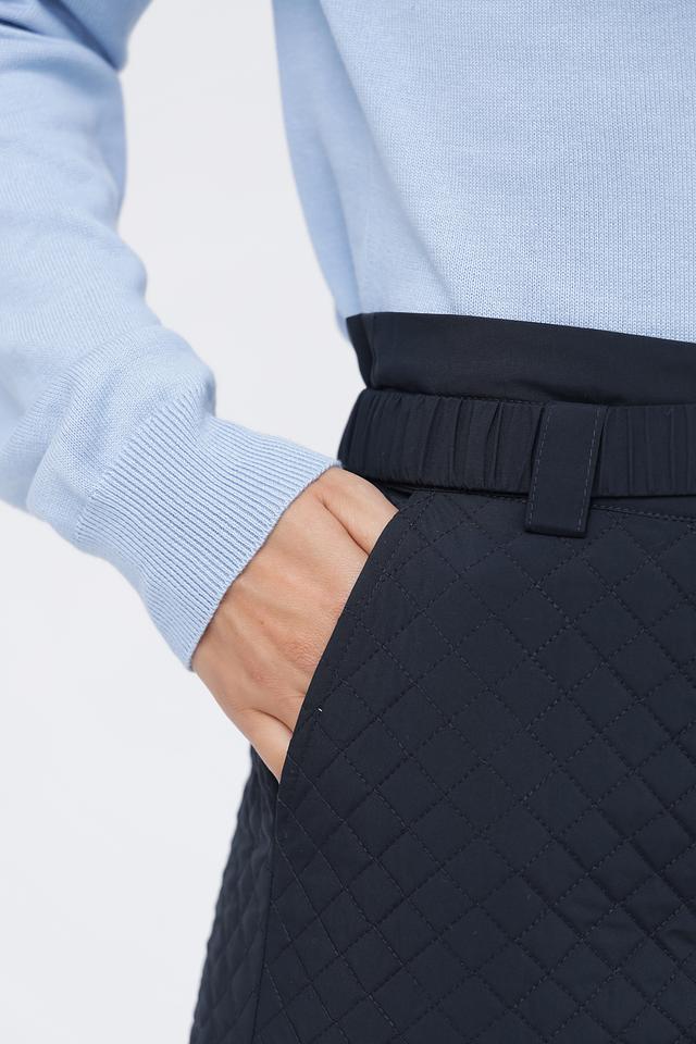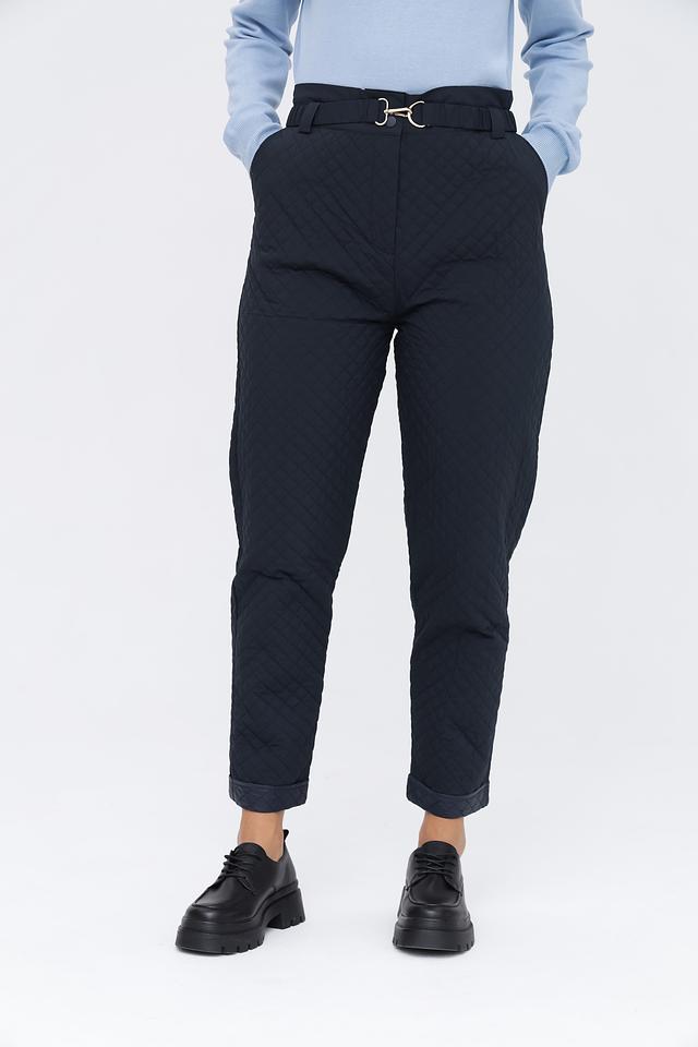 Особенностью этих брюк является стеганая текстура, придающая им современный и стильный вид. Пояс в комплекте акцентирует талию и добавляет образу завершенность. Брюки имеют удобный крой, обеспечивающий свободу движений.