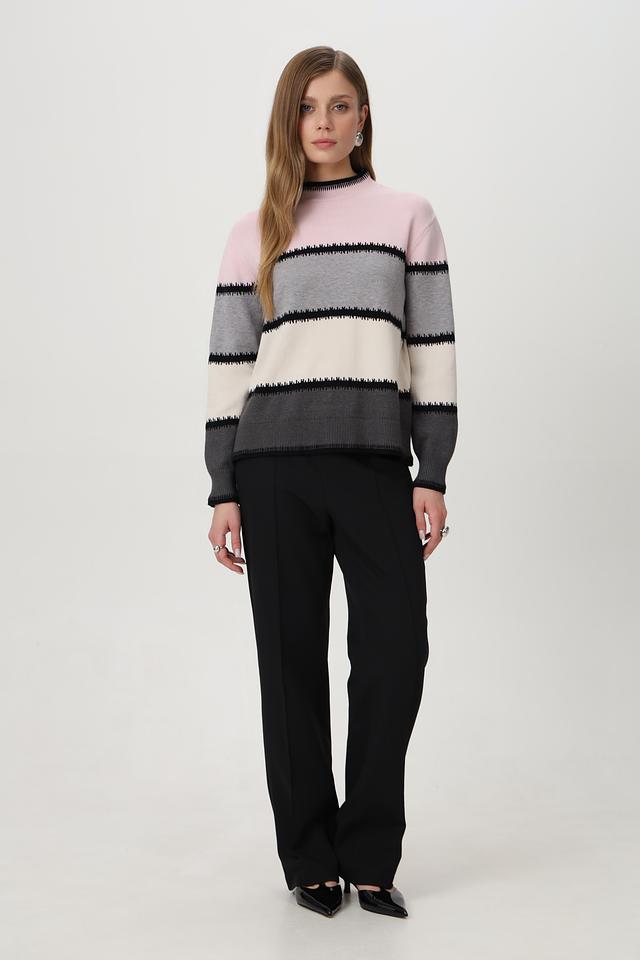 На брюках выполнены аккуратные стрелки, добавляющие образу строгости и деловитости. Они идеально подойдут для работы, встреч и других мероприятий, требующих соблюдения дресс-кода.