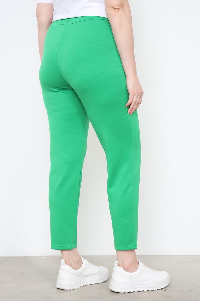 Зелёные трикотажные брюки от Rabe collection — удобная и стильная модель с эластичным поясом и боковыми молниями. Идеальный выбор для создания комфортных повседневных образов. Состав: модал 51%, полиэстер 43%, эластан 6%