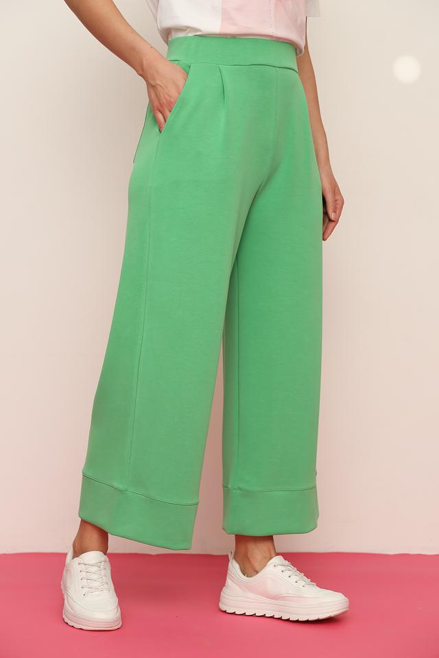 Представляем вашему вниманию элегантные брюки палаццо от бренда Rich and Royal. Эта модель выполнена в ярком зелёном цвете, который станет акцентным элементом вашего гардероба.