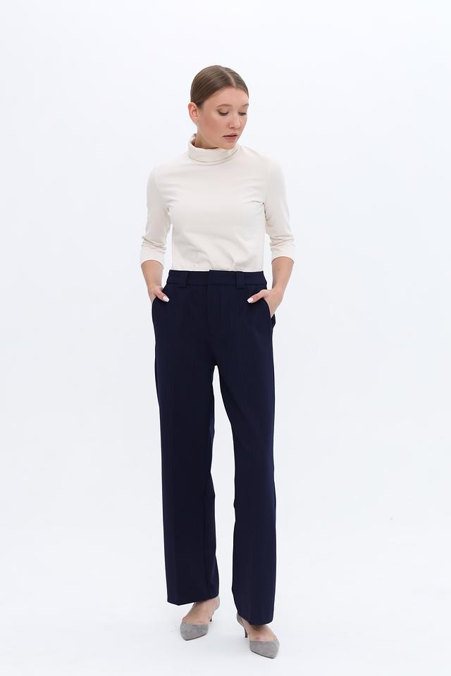 Брюки имеют прямой крой, который обеспечивает комфортную посадку по фигуре и позволяет создавать различные образы – от деловых до повседневных. Застежка на молнию и пуговицу гарантирует надежную фиксацию. Боковые карманы добавляют функциональности и практичности.