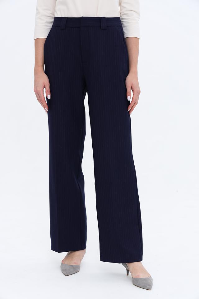 Темно-синие классические брюки от Rich and Royal с вертикальной полоской. Модель прямого кроя, с застежкой на молнию и пуговицу, имеет боковые карманы. Идеальный выбор для создания элегантного и стильного образа. Состав: полиэстер 68%, вискоза 29%, эластан 3%