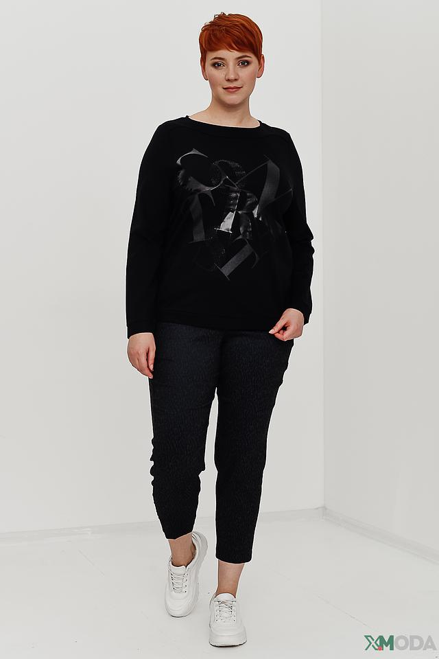 Женские брюки Samoon чёрного цвета с оригинальной текстурой. Модель выполнена из мягкой ткани с добавлением эластана для комфортной посадки и свободы движений. Состав: хлопок 61%, полиэстер 36%, эластан 3%