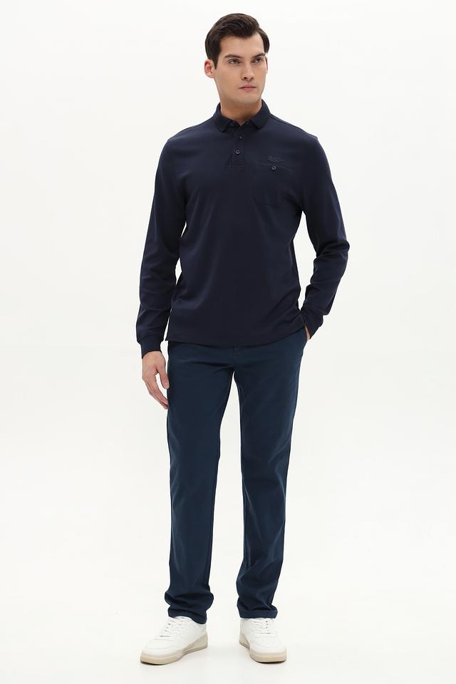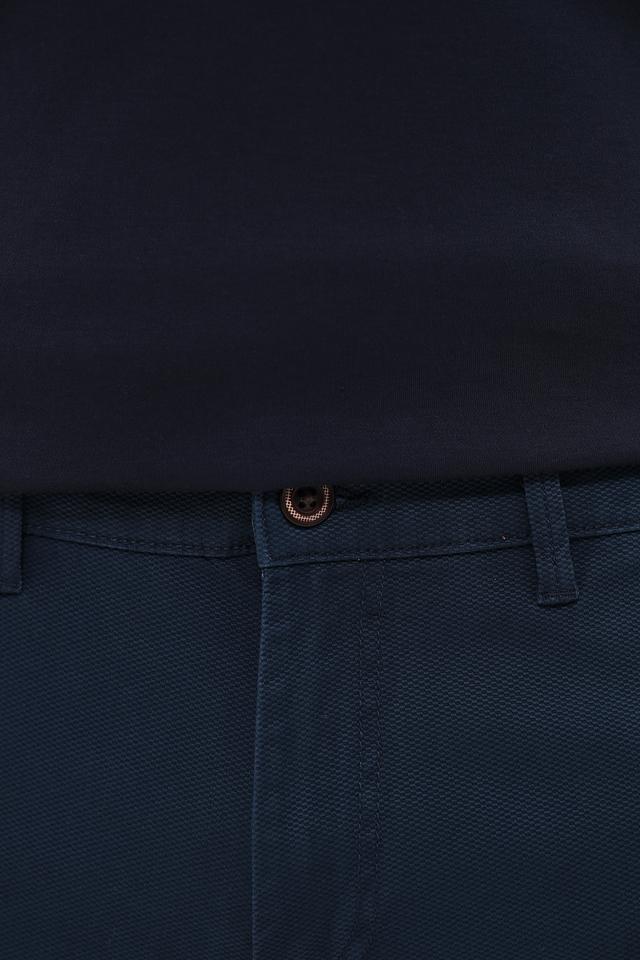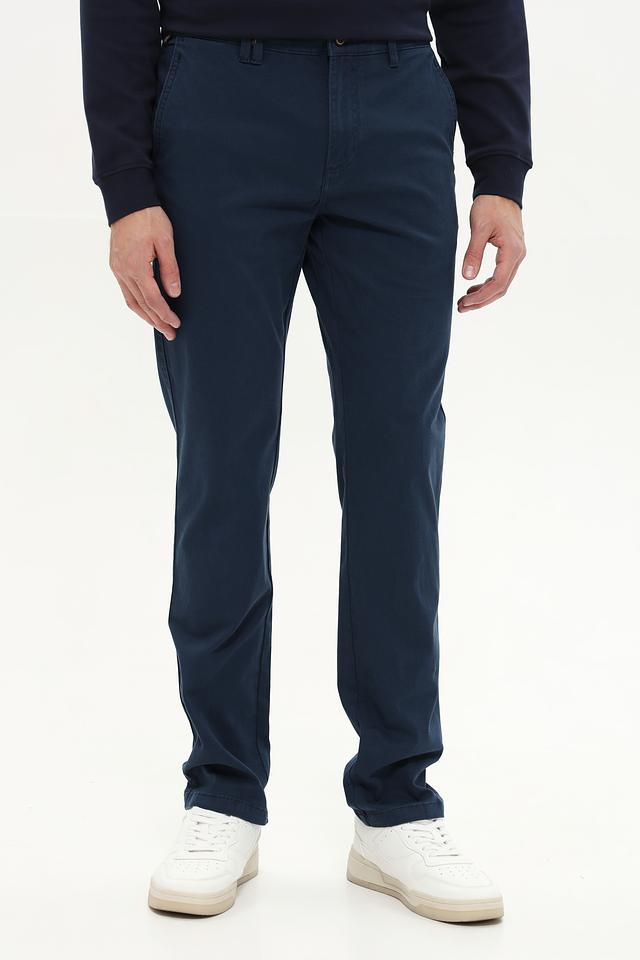 Цвет брюк – насыщенный темно-синий, который легко сочетается с различными элементами гардероба. Застежка на молнию и пуговицу, а также наличие задних карманов на пуговицах добавляют функциональности и стиля. Состав: хлопок 97%, эластан 3%.
