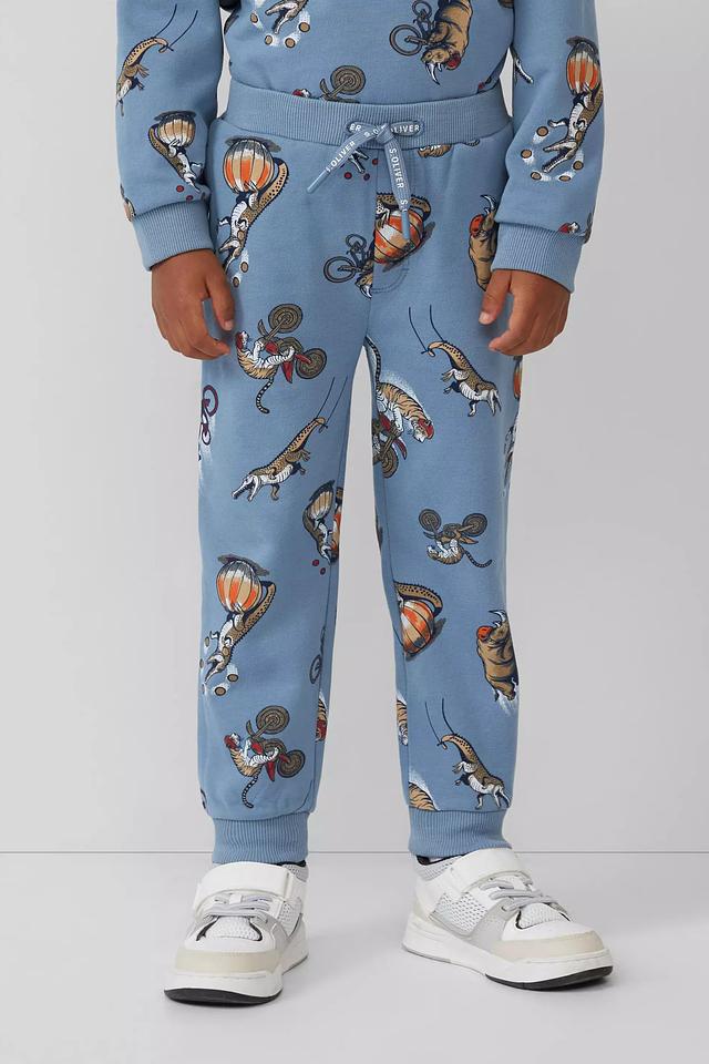 Детские брюки s.Oliver голубого цвета с ярким принтом. Изготовлены из мягкого хлопка с добавлением полиэстера для комфорта и долговечности. Состав: хлопок 90%, полиэстер 10%