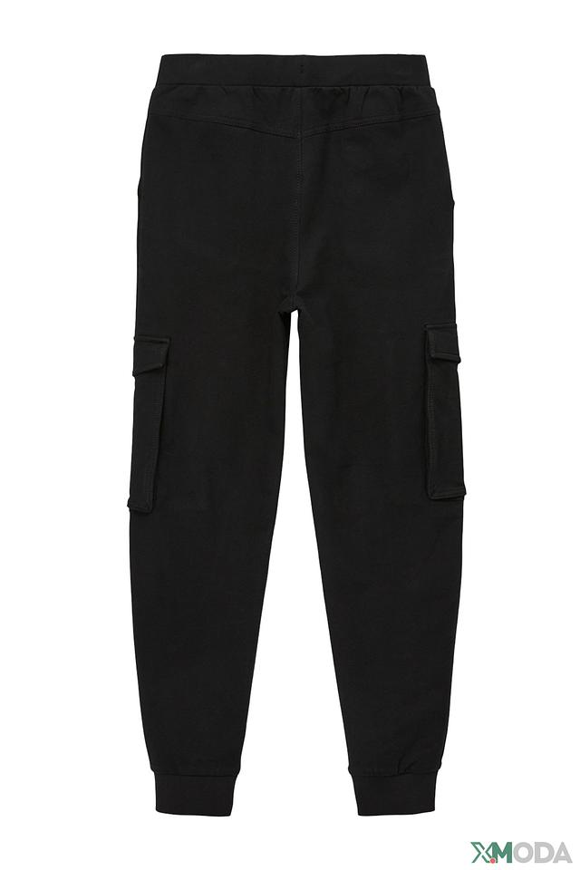 Дизайн брюк включает в себя эластичный пояс с регулирующим шнурком, два боковых кармана и два накладных кармана на бедрах. Низ брюк дополнен манжетами, обеспечивающими удобную посадку. Эта модель станет отличным выбором для повседневной носки, занятий спортом или активного отдыха.