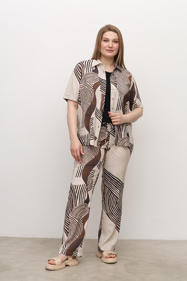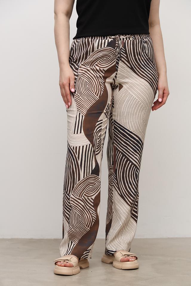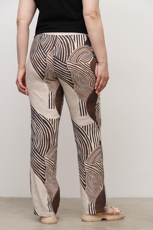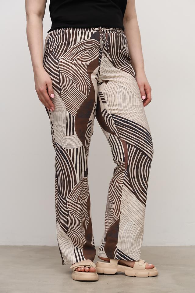 Женские брюки Sommer mann бежевого цвета с оригинальным полосатым принтом станут стильным дополнением к вашему гардеробу. Модель выполнена из мягкой и приятной к телу ткани, обеспечивающей комфорт в течение дня. Состав: вискоза 85%, полиэстер 15%