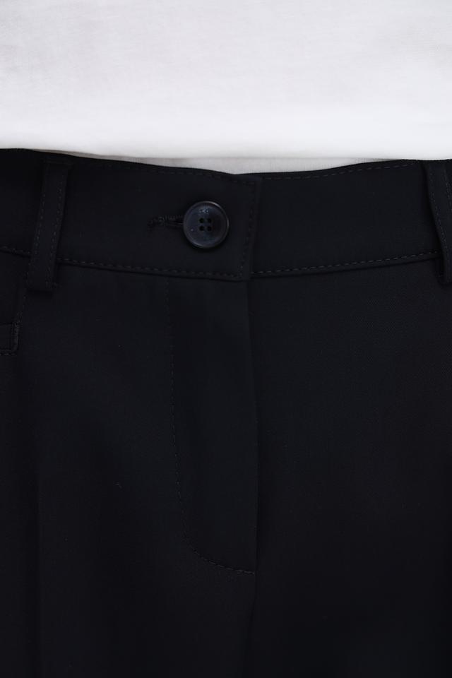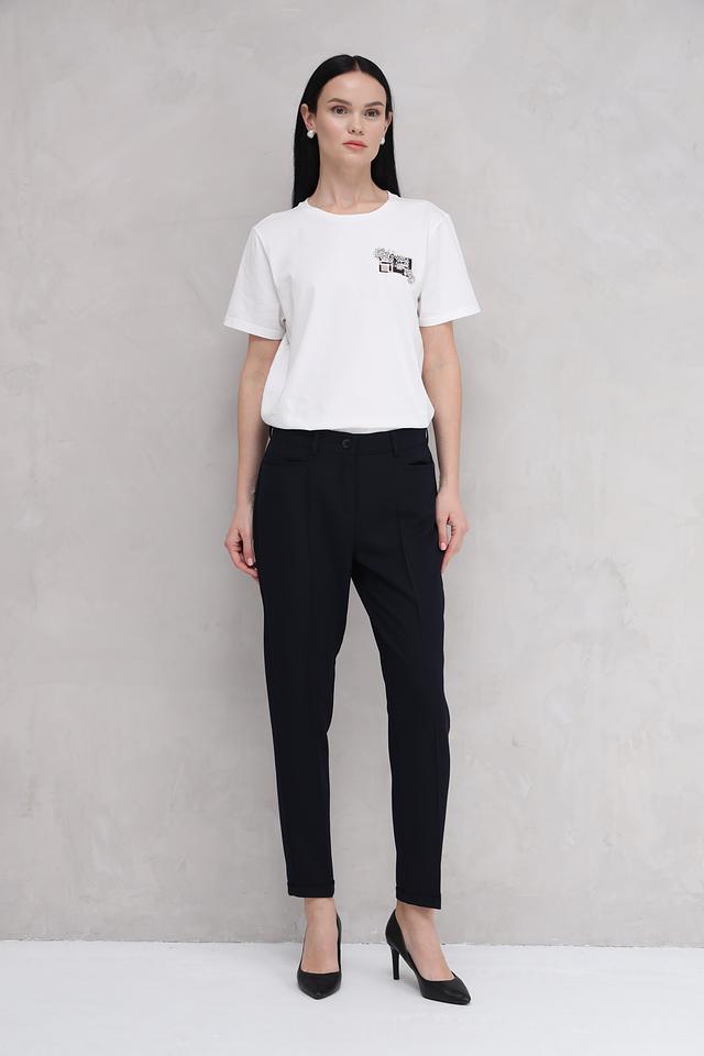Брюки имеют прямой крой, обеспечивающий комфортную посадку по фигуре. Высокая посадка визуально удлиняет ноги и подчеркивает талию. Застежка на молнию и пуговицу гарантирует надежную фиксацию. Модель дополнена боковыми карманами.