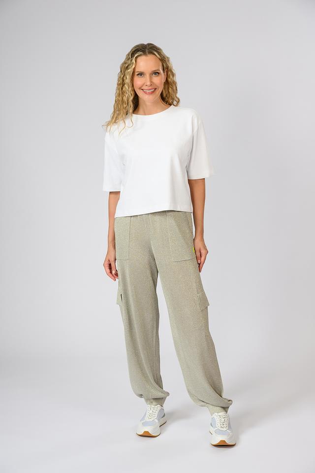Брюки имеют свободный крой и эластичный пояс на талии, обеспечивающие максимальный комфорт при носке. Наличие функциональных карманов-карго добавляет практичности и стиля. Ткань, состоящая из вискозы, полиамида и полиэстера, приятна к телу и хорошо держит форму.
