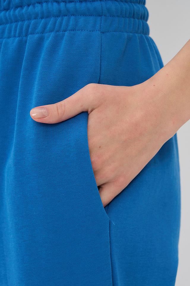 Синие спортивные брюки от VAY — удобная и стильная модель для повседневной носки. Брюки имеют эластичный пояс с завязками и манжеты внизу, что обеспечивает комфортную посадку. Изготовлены из мягкого хлопка с добавлением полиэстера. Состав: хлопок 65%, полиэстер 35%