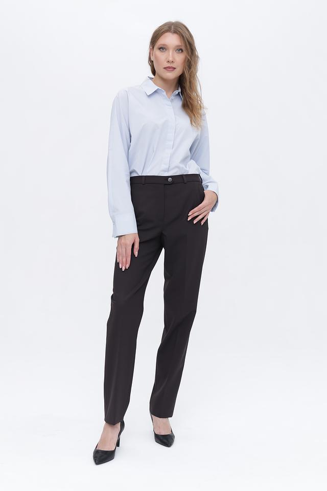 Застежка на молнию и пуговицу. Брюки имеют боковые карманы. Данная модель идеально подходит для создания деловых и повседневных образов. Их можно сочетать с блузками, рубашками и жакетами.