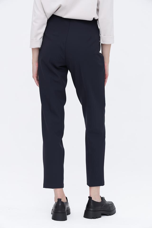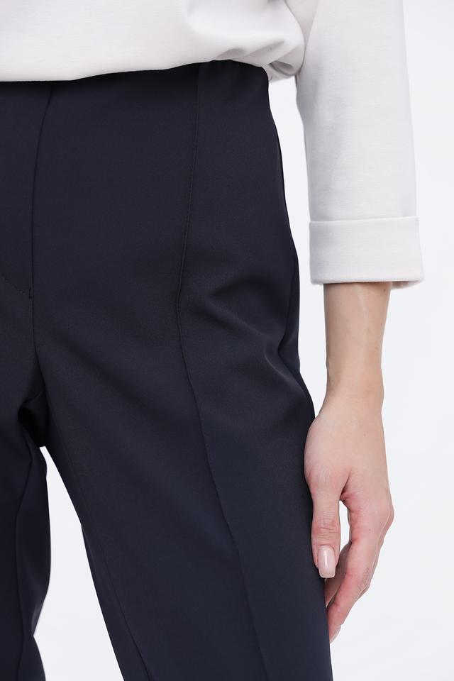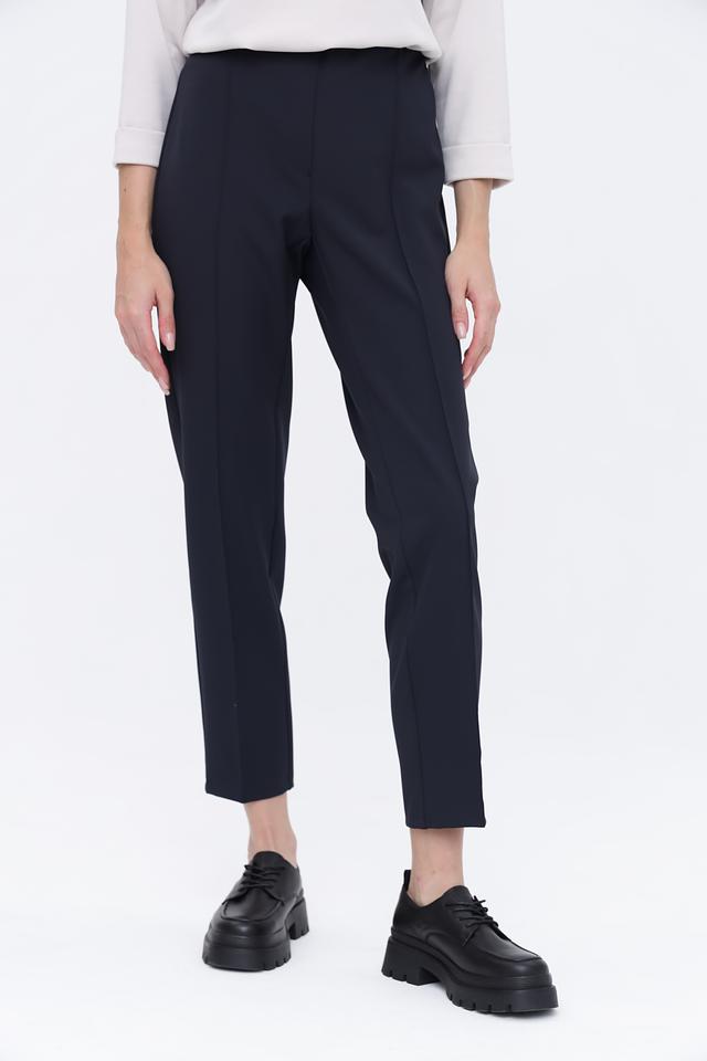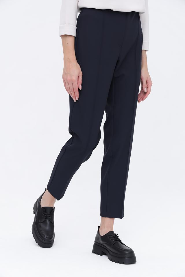 Особенностью данной модели является наличие продольных вытачек, которые визуально удлиняют ноги и придают брюкам более элегантный вид. Удобный пояс на резинке обеспечивает комфортную посадку по фигуре. Эти брюки идеально подойдут для создания как повседневных, так и деловых образов.