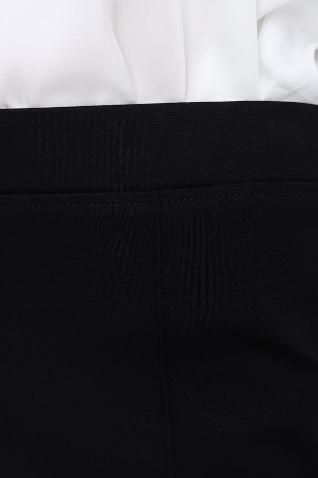 Брюки имеют прямой крой, который визуально вытягивает силуэт и обеспечивает свободу движений. Высокая посадка подчеркивает талию и создает аккуратный образ. Эластичный пояс обеспечивает комфортную посадку по фигуре.