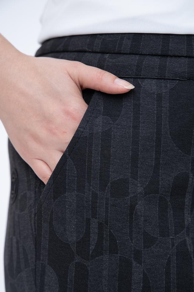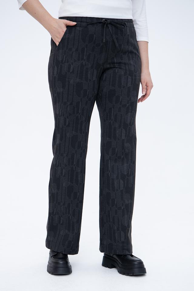 Эти брюки идеально подойдут для создания как повседневных, так и более элегантных образов. Их можно сочетать с различными видами верха, от простых футболок до блузок и жакетов. Универсальный чёрный цвет и стильный принт делают эти брюки незаменимым элементом вашего гардероба.