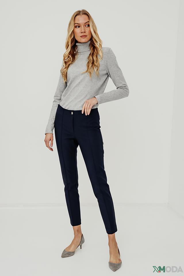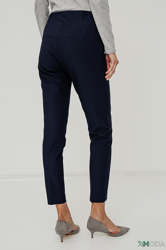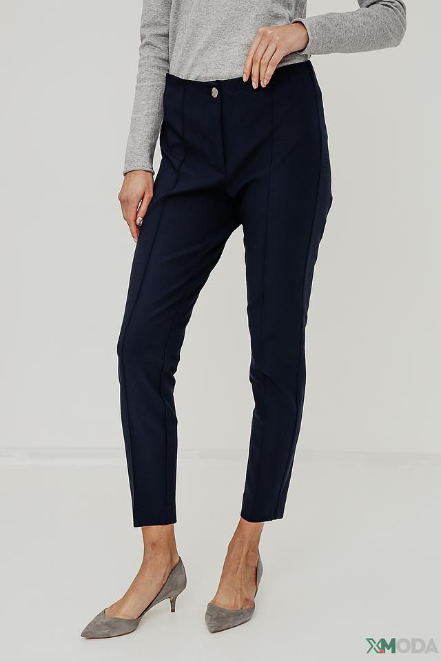 Брюки имеют прямой крой и стандартную посадку по талии. Особенности дизайна включают вертикальные вытачки спереди, которые визуально удлиняют ноги и создают более стройный силуэт. Застежка выполнена на молнию и пуговицу.