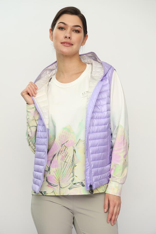 Лавандовый цвет придает жилету нежность и женственность, а стеганая текстура добавляет современный акцент. Модель оснащена удобным капюшоном и застежкой-молнией, что позволяет регулировать степень защиты от ветра и холода.