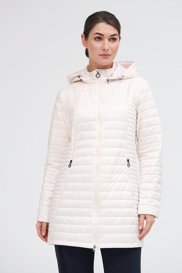 Куртка имеет стеганую фактуру, которая придает ей элегантный вид. Капюшон обеспечивает дополнительную защиту от непогоды, а застежка-молния позволяет легко регулировать степень теплоизоляции.